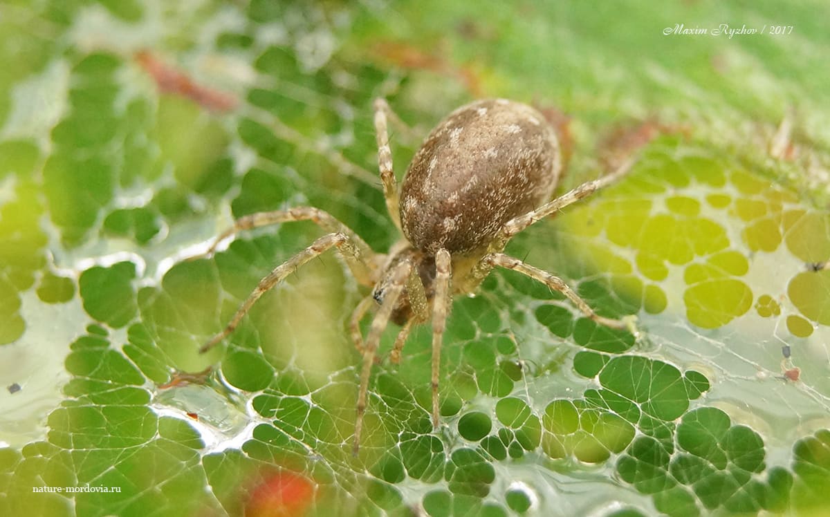 Самки стабильно сидели на полотне паутины, а вот самец бегал по земле. С чем это связано - не знаю. Но, в литературе пишут, что у пауков этого семейства сеть плетут как самцы, так и самки. Хотя, как известно, у других теневиков самцы как правило не плетут паутину.